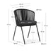 Saconca chair in black is made of steel finished with handwoven polyester cord, and includes cushions with removable covers. We recommend that you keep them dry on rainy days. The Saconca collection has a relaxed look, ideal for enjoying long after dinner chats on your balcony, terrace, or in your garden. Suitable for use indoors or in covered outdoor spaces.
