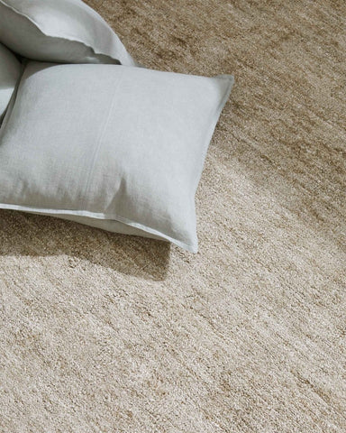 The Almonte floor rug is a super thick, soft and luxurious floor rug. It consists of 70% bamboo silk and 30% wool, measures 200cm x 300cm and features a full woven cotton backing and braided cotton edging for improved longevity and wear. It features a sophisticated hand-woven loom knotted design with a lustrous patina.