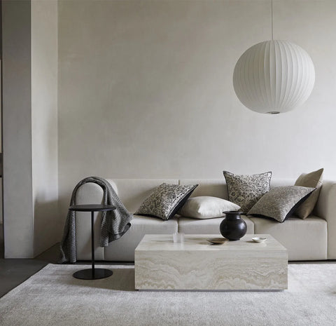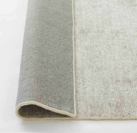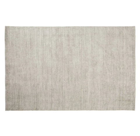 The Almonte floor rug is a super thick, soft and luxurious floor rug. It consists of 70% bamboo silk and 30% wool, measures 200cm x 300cm and features a full woven cotton backing and braided cotton edging for improved longevity and wear. It features a sophisticated hand-woven loom knotted design with a lustrous patina. The Oyster colorway is a neutral look with mottling silver tones throughout.