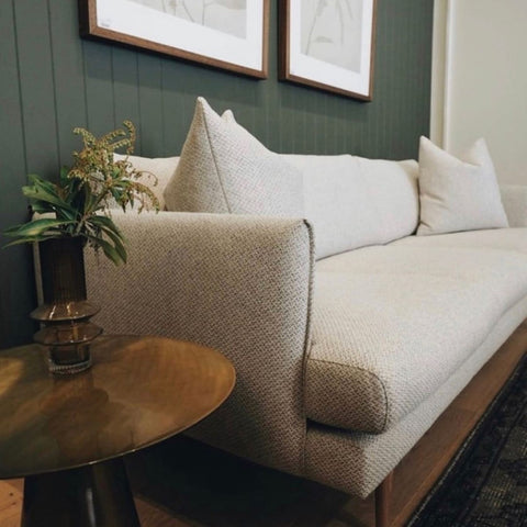 Our Ariana Sofa features feather-topped seat cushions and feather-filled back cushions.