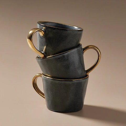 Our exclusive range of beautiful Ariel mugs has amassed a loyal cult following and continues to sell out time and again.They have been handmade and glazed in a reactive glaze in 5 different colours and gilded with gold around the rim and the handle. They are always a favourite amongst the Few and Far team and make the most perfect gift for someone you love.