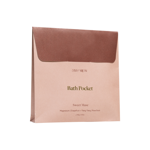Our Sweet Muse Bath Pocket is a luxurious Australian-made bath sachet, crafted like an oversized tea bag for the bath to create a relaxing, skin-nourishing soak—minus the cleanup. Packed with mineral-rich Epsom salts, pink clay, and a blend of natural botanicals in a compostable cotton bag, it releases magnesium bath salts, antioxidants, and skin softening oils to comfort tired muscles and care for your skin. The soothing aromatherapy of Orange, Grapefruit, Ylang Ylang, and Vanilla transforms your bathroom into a mindful wellness sanctuary, inviting you to slow down and reconnect with yourself.