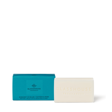 French triple-milled for a luxurious lather and infused with sweet Almond Oil, Shea Butter and Vitamin E. A dynamic cocktail of velvety Rose, buttery Saffron and head-turning Moss.