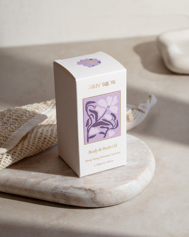 Embrace gentle calm with our Lilac Skies Body Oil. Infused with vitamin-rich oils and essential fatty acids, this nourishing blend leaves skin soft and luminous. Uplifting Pomelo and soothing Ylang Ylang awaken the senses, while Jasmine, Ho Wood, and Vanilla create a calm, balanced finish. Use as a body moisturiser, bath soak, or hair treatment—our rich formula melts in with just a few drops. Beautifully housed in recyclable glass, it's a quiet ritual for skin and mind.