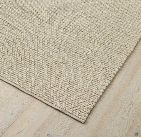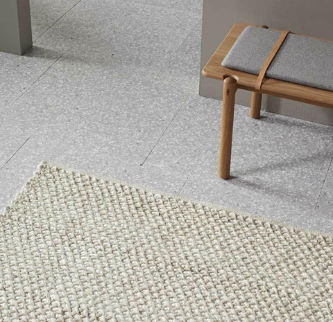 Handwoven by artisans, the textural depth and interest of the Emerson is created by interlacing yarns of loosely spun New Zealand wool, and viscose. Our Feather colourway combines raw wool with a touch of charcoal tones to create an overall soft grey look.