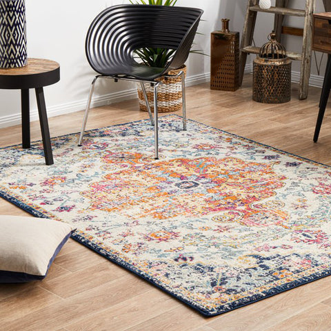 Expertly woven in Turkey by expert craftsmen, the Evoke Carnival White Rugs presents a tangerine floral center laid of white layout. This pile is classically elegant creating a Persian inspired look with stunning detail and a sumptuous range of color. Machine-woven in Turkey from 100% polypropylene, this durable piece is an ideal base for a busy space since it's designed to hold up to high-traffic. Plus, it's easy to clean with regular vacuuming thanks to a low 10mm pile height.