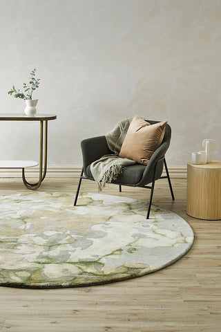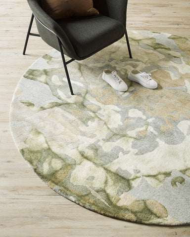 A standout piece, the patterning of this floor rug is created by a specialized dyeing process applied to a hand tufted base. Woven in a soft wool-viscose blend and featuring gently shimmering details, the Fayette's circular design creates a wonderful focal point to style your room around.