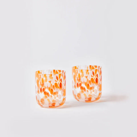The Bonnie and Neil Dots Orange tumblers are made from hand blown glass featuring specks of opaque and clear coloured glass. Designed to complement our tableware range, these beautiful tumblers make the perfect finishing touch for each place setting but also look at home on your desk or bedside table!