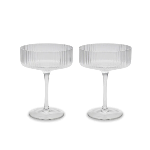 Lend an air of vintage sophistication to your next cocktail making party with our Hazel Ribbed Coupe Glasses. Made from fluted glass, these old-fashioned coupe glasses are sure to elevate any cocktail night and be the envy of all guests. As these glasses are hand blown, please allow for minor imperfections and differences between glasses.