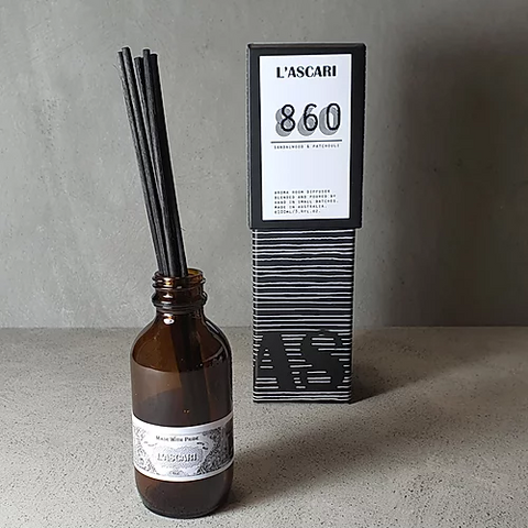 The L'ASCARI range of room diffusers is hand blended, hand poured and hand labelled; made up of 100mls of aroma oil to discreetly fill your space with a choice of 6 unique fragrances.