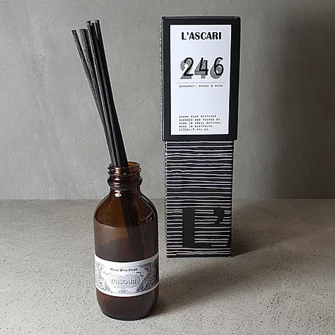 The L'ASCARI range of room diffusers is hand blended, hand poured and hand labelled; made up of 100mls of aroma oil to discreetly fill your space with a choice of 6 unique fragrances.