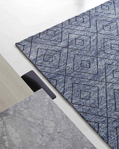 Makalu is a contemporary design, a clean fresh take on the diamond within a diamond motif of Berber rugs. It's a generous rug, with a thick loop pile, that feels soft and warm underfoot.