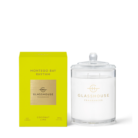 The Montego Bay Rhythm Coconut & Lime 380g Soy Candle is part of the Gourmand Fragrance Family. Gourmand fragrances replicate the wonders of food ingredients. Sometimes fresh and fruity, other times sweet and decadent, but always delectable and ready to party.
