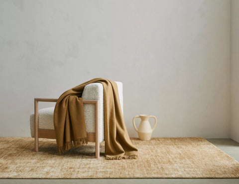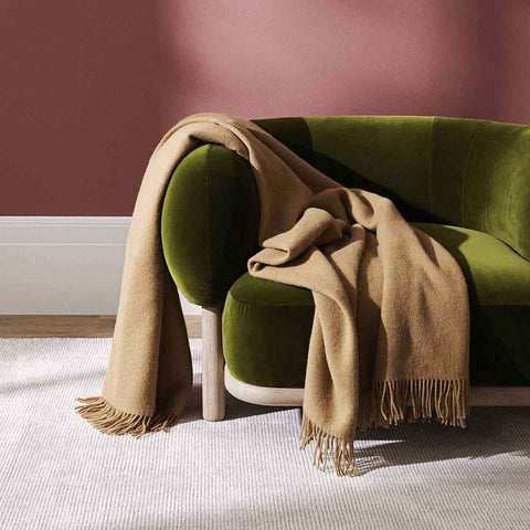 This is a beautiful camel throw blanket woven from 100% New Zealand lambswool. This simple uni coloured design is a classic which will last for many years. At 130cm x 200cm it's the perfect size for styling on your couch or bed.