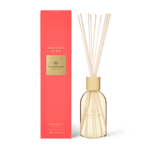 The One Night in Rio Passionfruit & Lime 250ml Fragrance Diffuser is part of the Gourmand Fragrance Family. Gourmand fragrances replicate the wonders of food ingredients. Sometimes fresh and fruity, other times sweet and decadent, but always decadent and ready to party. Â