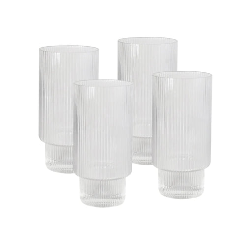 Lend an air of vintage sophistication to your next dinner party with the Oscar Ribbed Highball Glasses. Made from fluted glass these highball glasses, are sure to elevate your table and be the envy of all your dinner guests. As these glasses are hand blown, please allow for minor imperfections and differences between glasses.