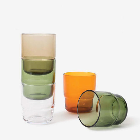 Sip drinks in style from the Piccadilly Tumbler in olive glass. The considered design allows the tumbler to be stacked, saving room when stored in your cabinet.