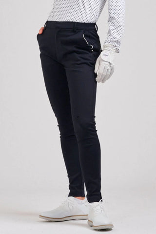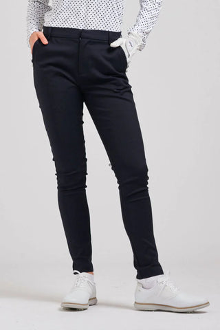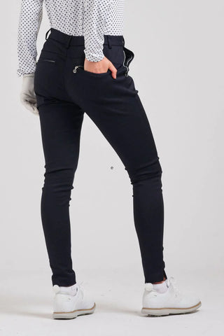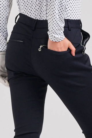 Every detail of this luxe sports pant has been considered and laboured. We had to craft a pant that was unashamedly flattering and as functional as possible. High quality stretch fabric, a long rise, 4 zippered pockets, elasticised panel in waistband. Designed to perform on and off course. Finished with an embroidered tonal C. at pocket.