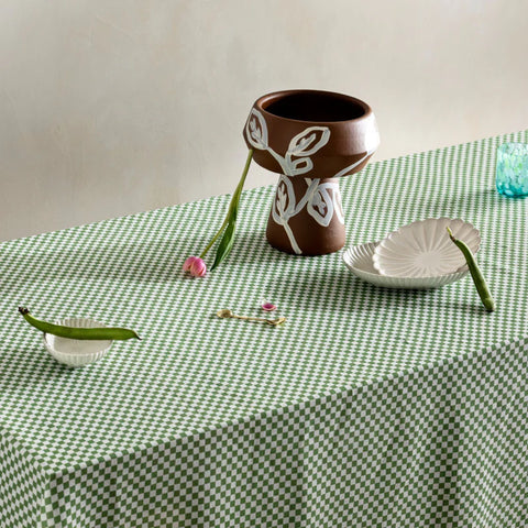 Our Tiny Checkers Sage rectangular tablecloth features original artwork by Bonnie printed on our soft 'doux' 100% linen.