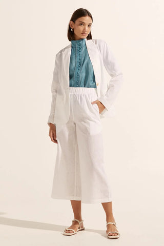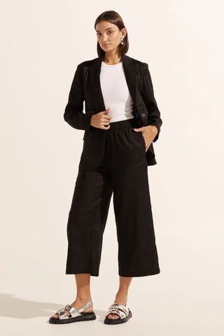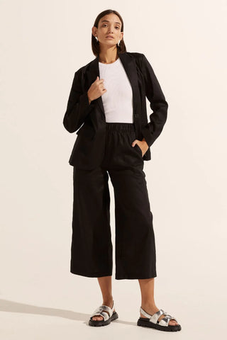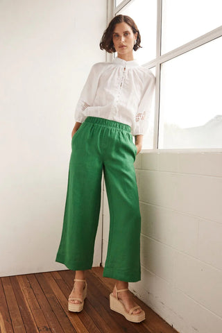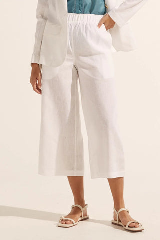 a clean, effortless design that provides a framework for the fluidity of the luxurious linen fabric. perfect for down-to-earth workwear or off-duty ease. functional to its core, this cropped pant is finished with side pockets and a wide elasticated waistband fusing comfort and style. see product details below.